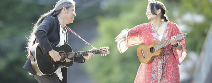 『チチンプイプイは六角精児バンドで活躍中のオープンチューニングギタリスト佐藤克彦と、その妻でもありシンガーソングライターの佐藤杏による夫婦アコースティックフォークDUOです。日本の原風景を思い描くようなオリジナル曲に加え、ジョニ・ミッチェル